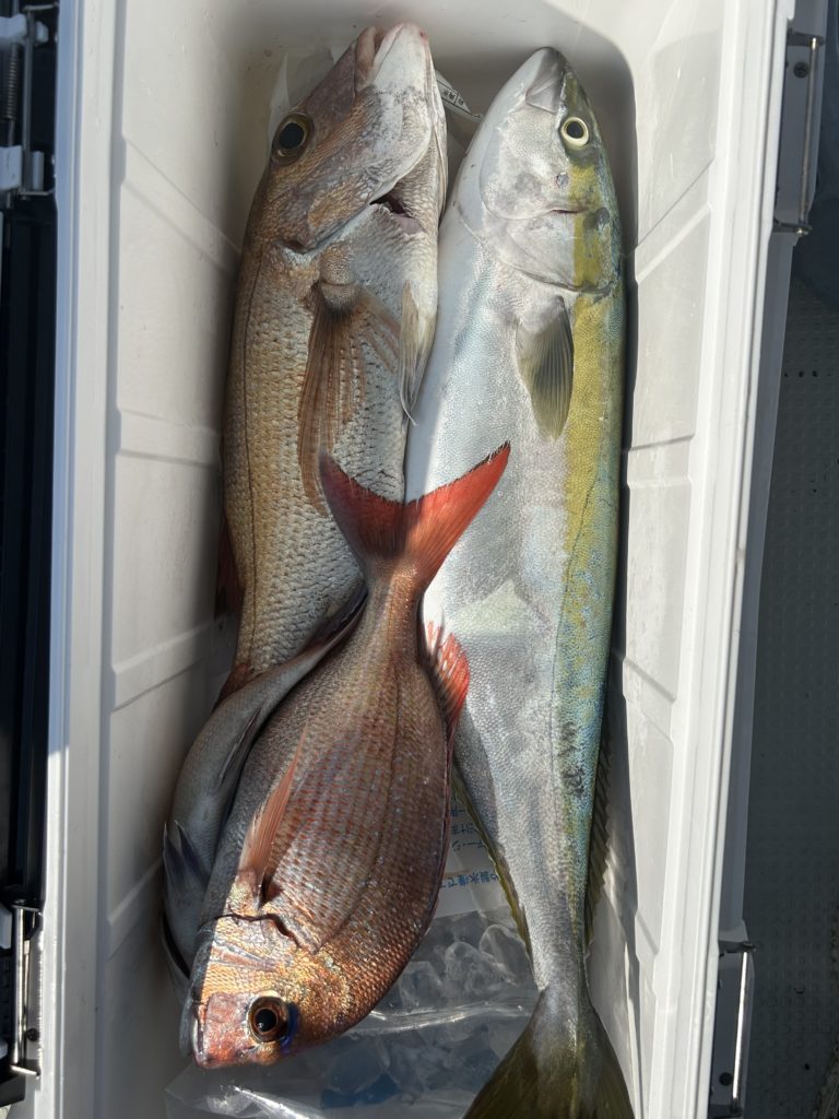 2025年08月24日今日は3名様で出船、タイラバ、ジギングでマダイ、ハマチゲットできました