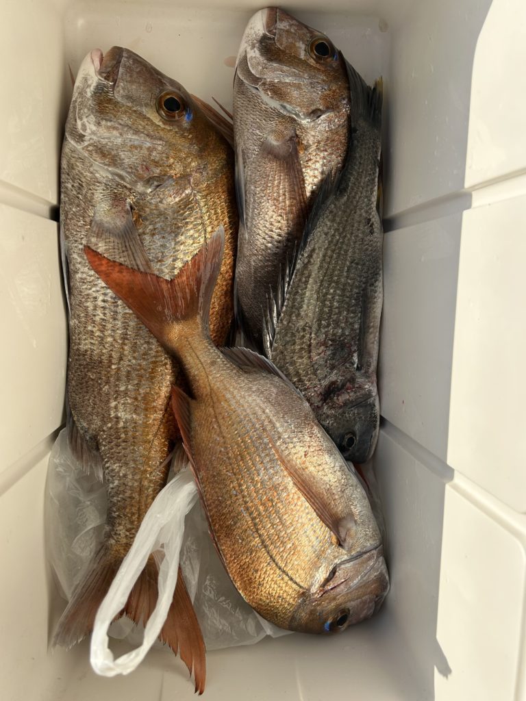 2026年01月09日タチウオ狙いは釣れない様なので急きょ中止に、マダイ狙いのタイラバでお客様1名で出船、マダイ3匹、キビレ1匹釣られました