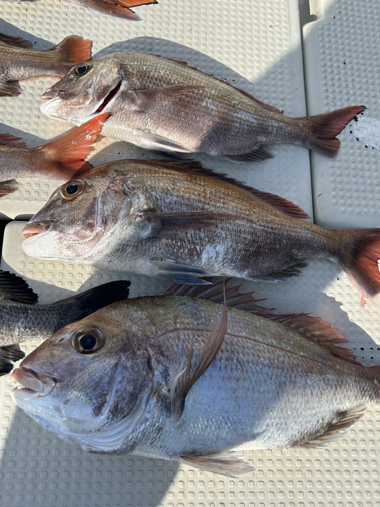 2026年02月04日今日は2名様でタイラバ、午前中はよくマダイの当たりがありこの時期としてはまずまず少し当たりが無くなったのでポイント移動しましたが風、波ともに強くなり、もとのポイントに戻りお客様が1匹追加した所で納竿としました。