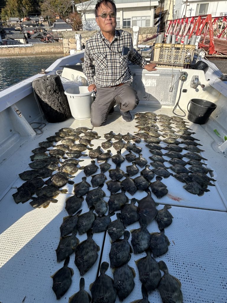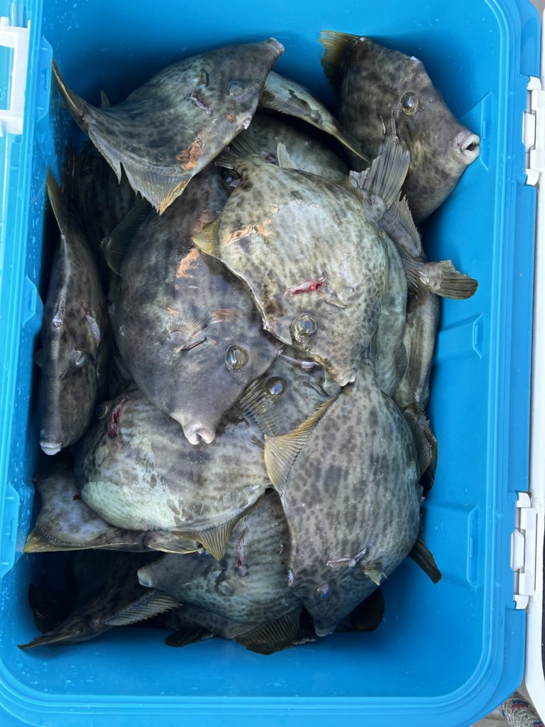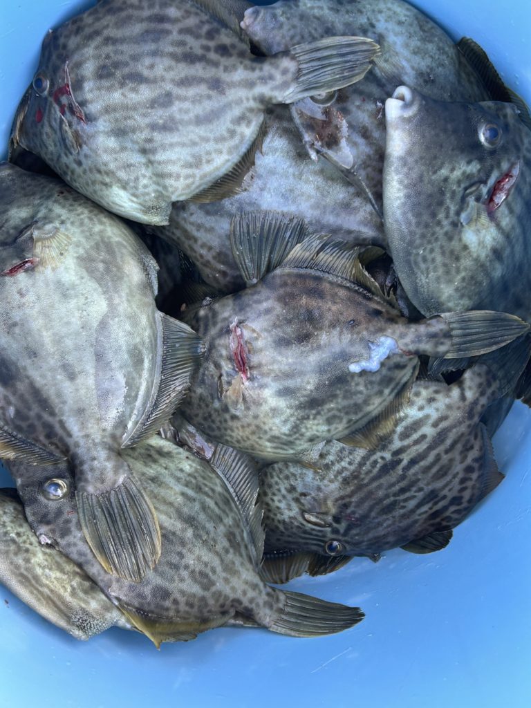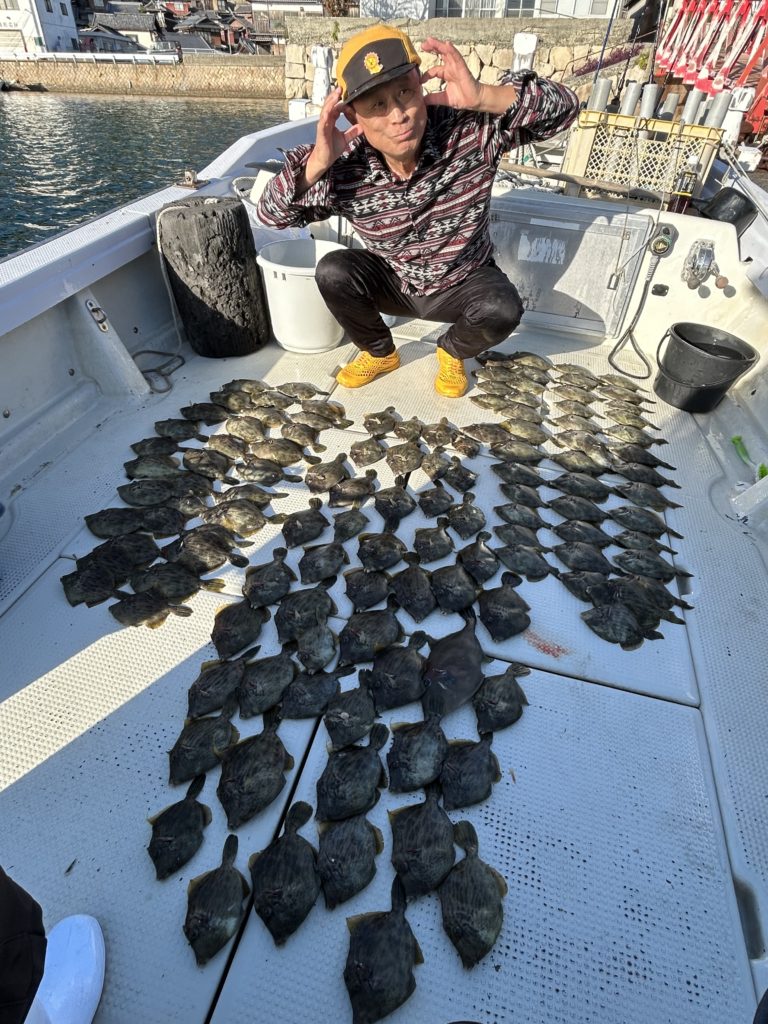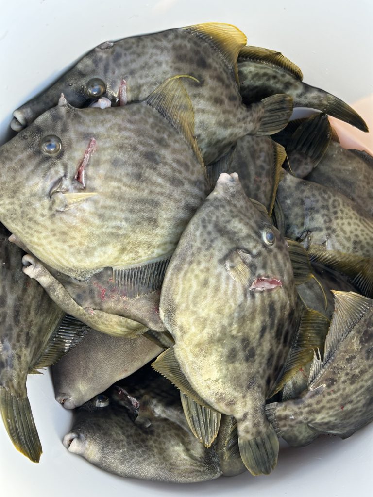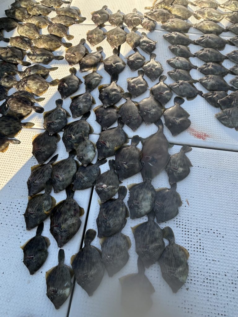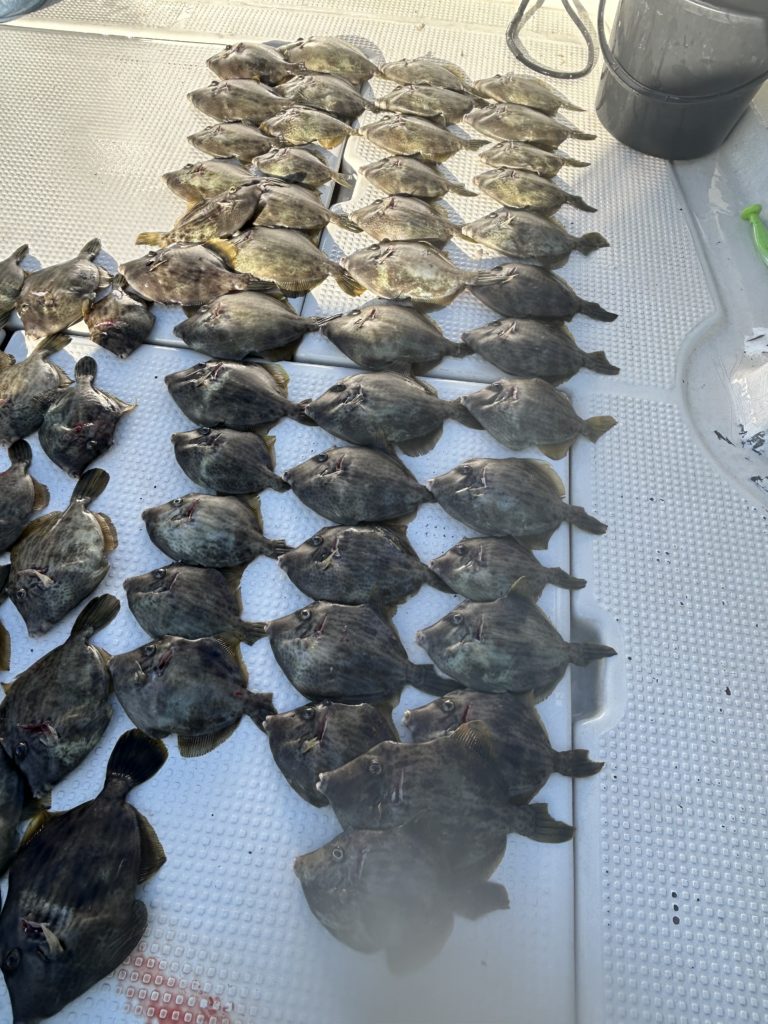 2025年11月26日今日はカワハギ狙いで3名様で出船、カワハギ結構釣れました、写真にないのもおります