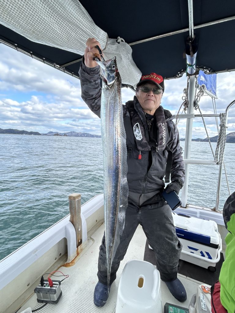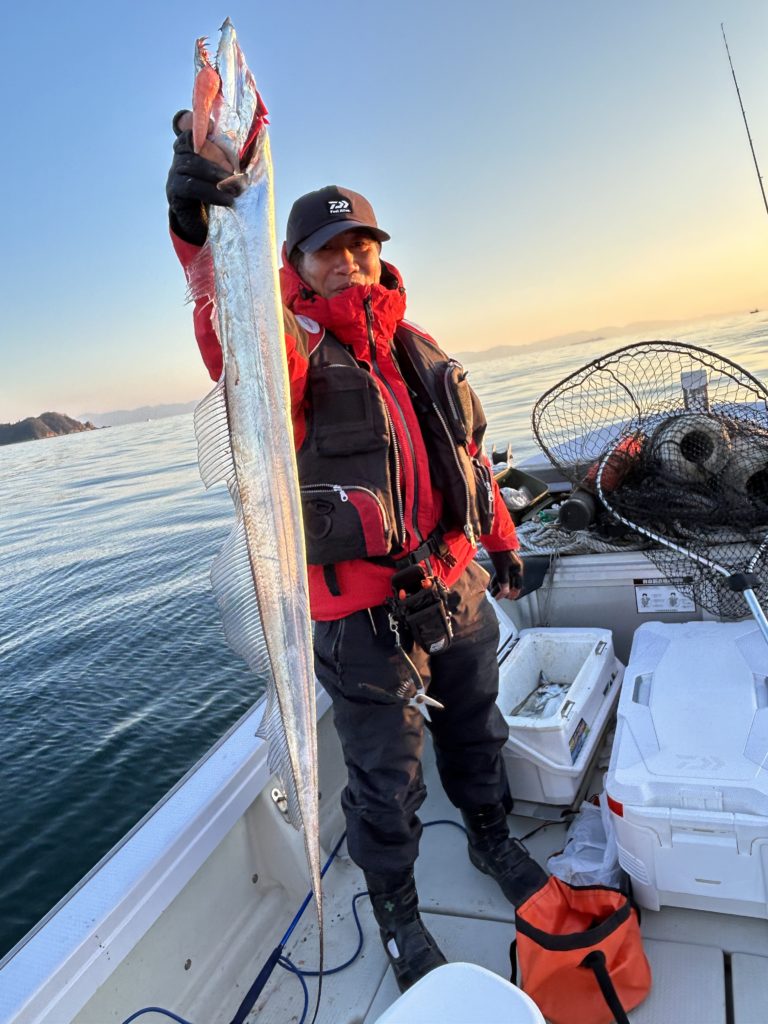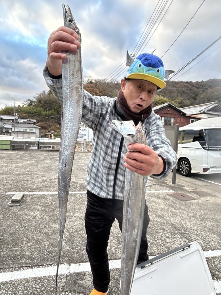 2025年12月27日今日はカワハギ狙いを辞めてタチウオに変更、波風ある寒い中数は少ないですが5本指クラス釣れました